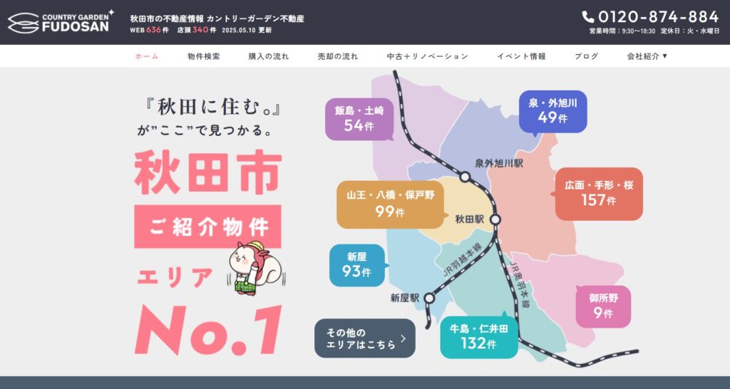 地域密着型の不動産業者で、秋田市内の市街化調整区域の買取の相談にも対応しています。地元ならではの情報網を活かした査定が魅力です。