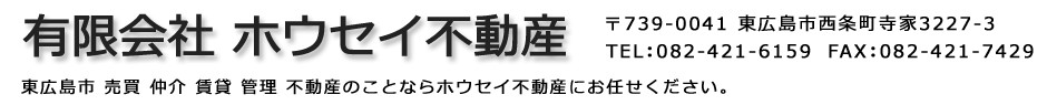 東広島市西条町寺家に所在地を置く有限会社 ホウセイ不動産は、不動産に関する幅広いサービスを提供しています。共有持分など、売却に専門知識が必要な物件についても、お客様の悩みに寄り添った相談・買取に対応しています。