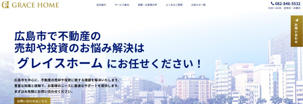 株式会社グレイスホームは、広島市を拠点に不動産事業を展開しており、共有持分や再建築不可物件といった、一般的には売却が難しいとされる不動産についても、相談・買取に対応しています。専門知識を持ったスタッフが、お客様一人ひとりの悩みに寄り添い、丁寧なサポートを心がけています。
