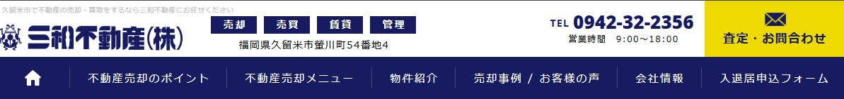 久留米市の螢川町に所在地を置く三和不動産株式会社は、長年の信頼と実績を持つ会社です。再建築不可物件の相談に対応しており、権利関係が複雑な不動産等の悩みに寄り添う姿勢を大切にしています。顧客の不安を解消するために尽力し、最適な解決策の提案に努めています。