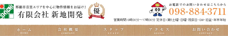 那覇市の首里汀良町に所在地を置く有限会社新地開発は、再建築不可物件に関するお悩みの相談に対応しています。他社で断られてしまった物件や、権利関係が複雑な不動産等の問題にもしっかりと寄り添い、お客様の不安を解消するために尽力し、最適な解決策をご提案しています。