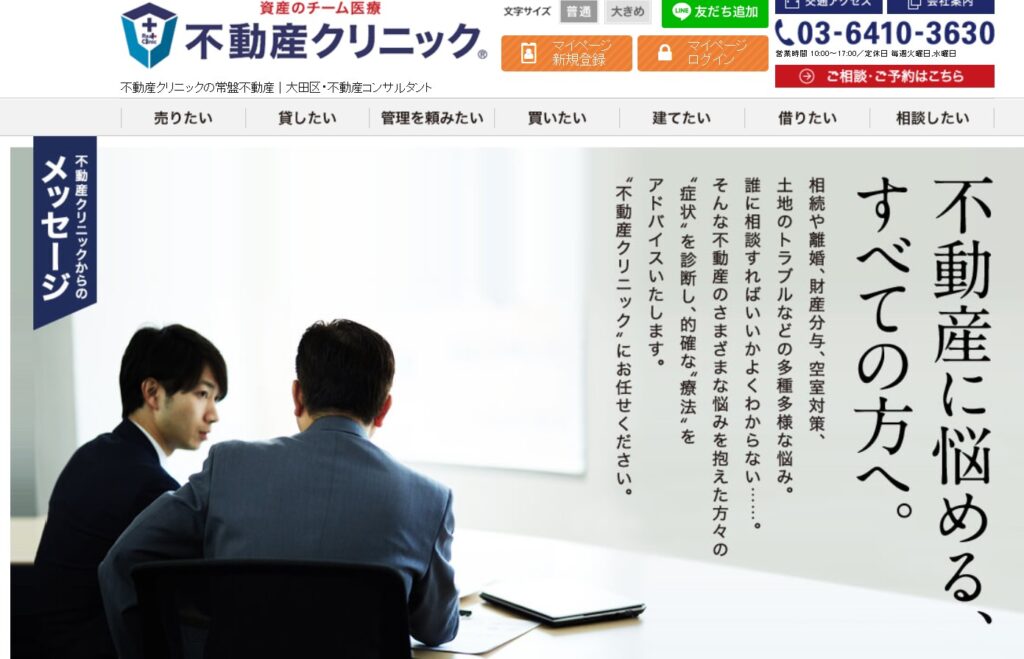 池上エリアで活動している老舗の不動産会社です。不動産に関するあらゆる相談を受け付けており、「不動産クリニック」として権利調整や売却の悩みに応えています。共有持分や相続物件の整理を相談できる点が特徴です。