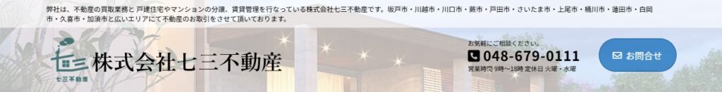 さいたま市北区に所在地を置く株式会社七三不動産は、不動産に関する多様な相談に対応しており、再建築不可物件についても、プロフェッショナルな視点から売却や買取の相談を受け付けております