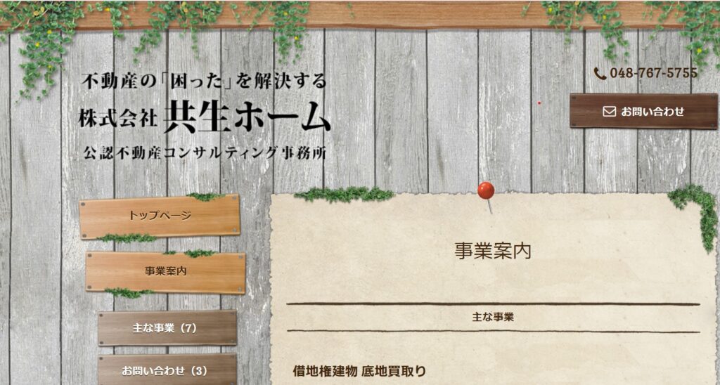「不動産の困ったを解決する」と謳う(株)共生ホームでは、借地権が付いた建物や底地の買取だけでなく、コンサルとしての対応も好評です。