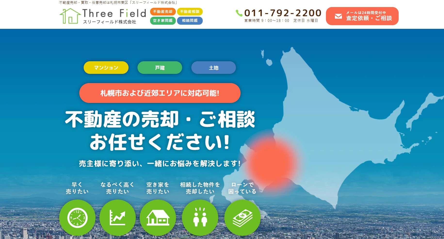 札幌市内を拠点に不動産の買取・仲介・賃貸物件の管理を行っている会社です。マンションや戸建てはもちろん、投資用物件の買取にも対応しご相談にも対応しております。