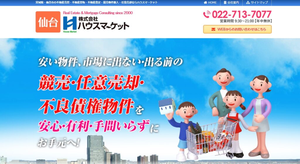 株式会社ハウスマーケットは、仙台市を中心に不動産売買やコンサルティングを行っています。共有持分など、複雑な権利関係を持つ不動産についても、専門知識を活かした相談・買取に応じています。