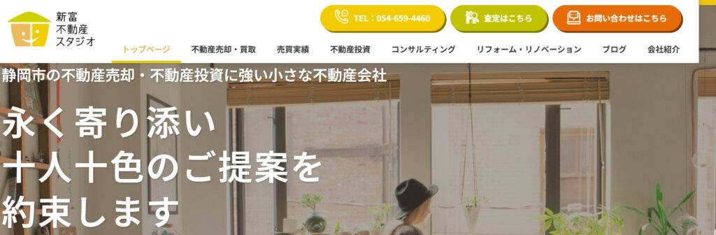 静岡市葵区に所在地を置く株式会社新富不動産スタジオは、地域に密着した不動産に関する相談に対応しています。共有持分など、権利関係が複雑な不動産についても、お客様の状況を考慮し、丁寧な相談・買取に対応しています。
