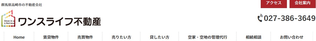 高崎市の天神町に所在地を置く株式会社Once Lifeは、その名の通りお客様の人生に寄り添い、不動産の悩みに親身に相談に乗ってくれる不動産会社です。買い手がつきにくい再建築不可物件など、他社で断られた物件でもじっくりと話を聞いてくれる体制が整っています。権利関係が複雑な不動産等の悩みに寄り添い、顧客の不安を解消するために尽力しています。