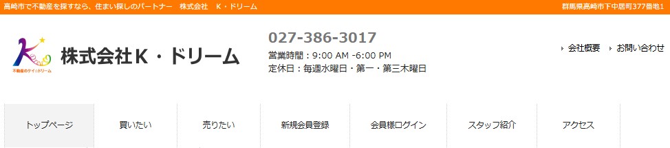 高崎市の下中居町に所在地を置く株式会社K・ドリームは、お客様が抱える不動産の困りごとに親身に相談に乗ってくれる不動産会社です。再建築不可物件のように処分が難しいとされるものでも、他社で断られた物件でも分け隔てなく話を聞いてくれる姿勢を持っています。権利関係が複雑な不動産等の悩みに寄り添い、顧客の不安を解消するために尽力しています。